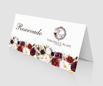 Plaquinha de mesa reservado para casamento bodas aniversários Floral Marsala