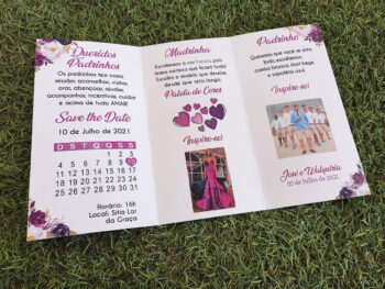 Convite Manual de Padrinhos Floral Roxo, Lilás, Personalizado
