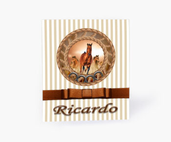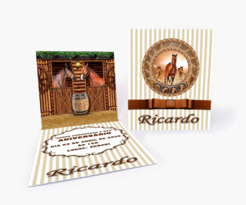 Convite Infantil Aniversário Menino Fazendinha Corda Cavalo Listras Marrom