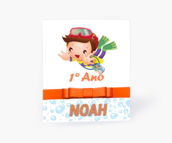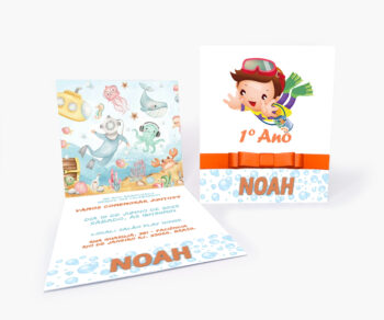 Convite Personalizado Infantil Aniversário Tema Fundo do Mar Azul Laranja