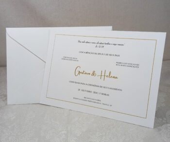Convite com envelope rústico para Casamento aniversário 15 anos Dourado