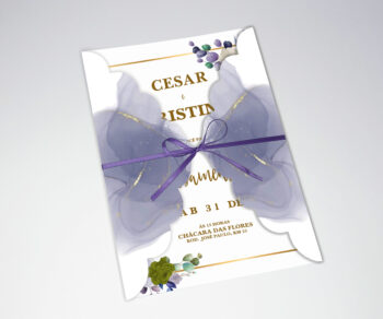 Convite para casamento Aniversário Floral cores Lilás Lavanda Dourado