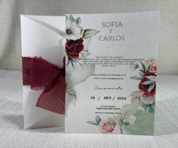 Convite Clássico para Casamento floral marsala Papel Especial Markatto