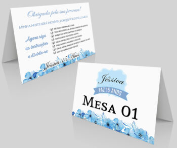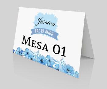 Placa de Mesa Numeração e agradecimento Aniversario 15 anos Azul Celeste