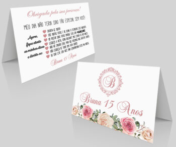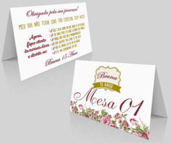 Placa de Mesa Numeração e agradecimento Aniversario 15 anos Cartas