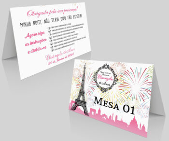 Numeração de Mesa Aniversário 15 Anos Torre Eiffel Rosa e Preto