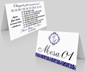 Placa de Mesa Numeração e agradecimento Aniversario Casamento Azul Royal