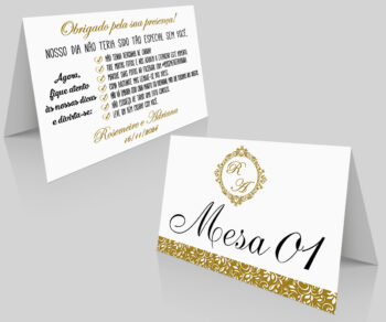 Placa de Numeração Agradecimento Marcador de Mesa Dourado