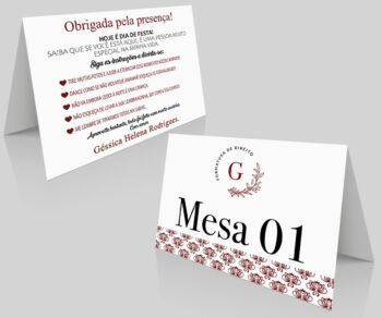 Placa com QR Numeração de Mesa para Formatura Curso Direito Marsala