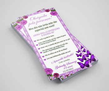Agradecimento de Mesa para Aniversário Floral Roxo Borboletas