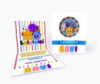 Convite Infantil Personalizado Aniversário Tema Bolofofos Azul Listras