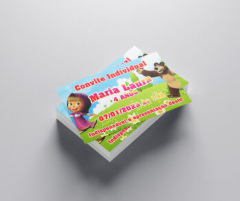 Convite Individual Senhas Azeitoninhas Infantil Tema Masha e o Urso