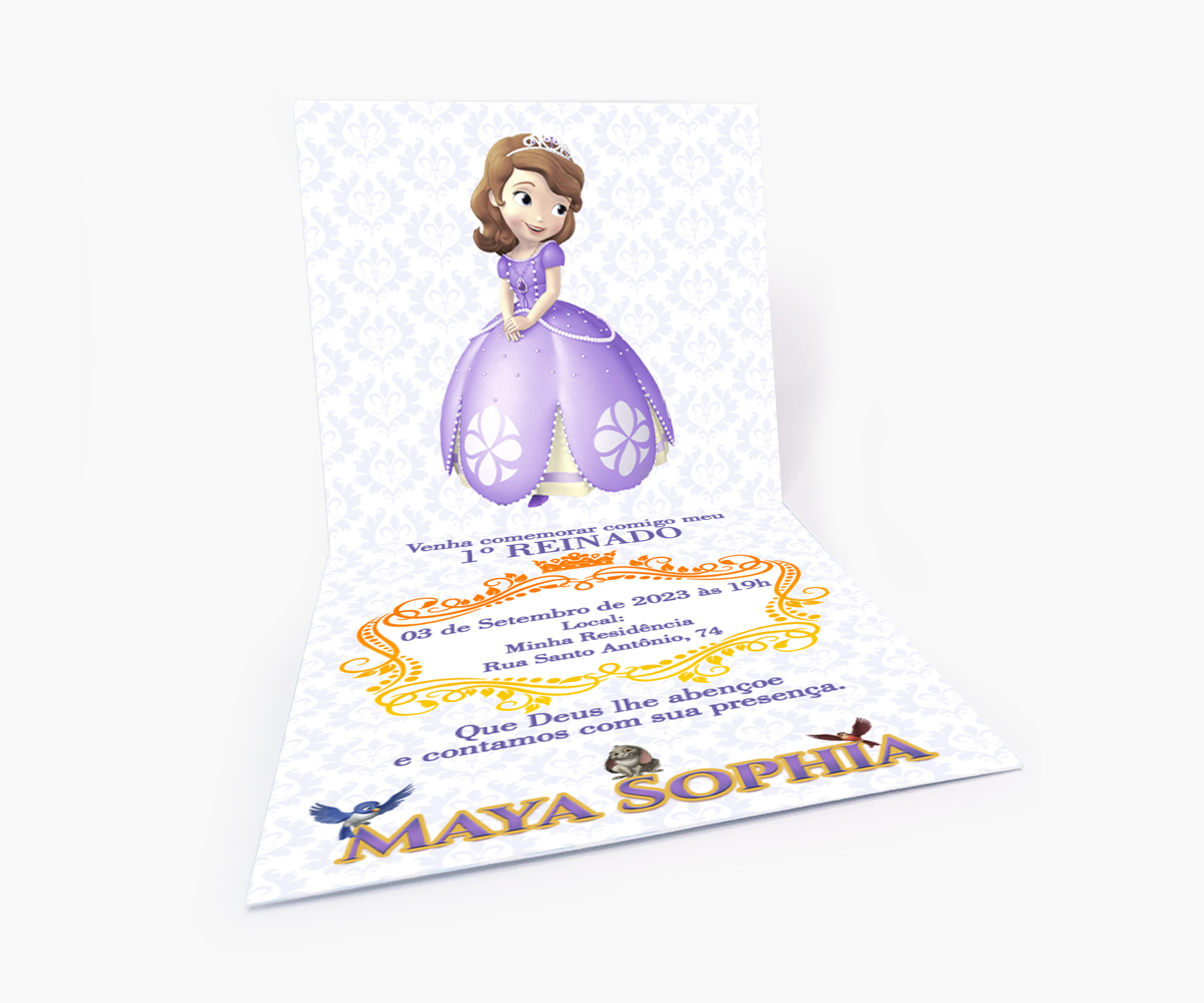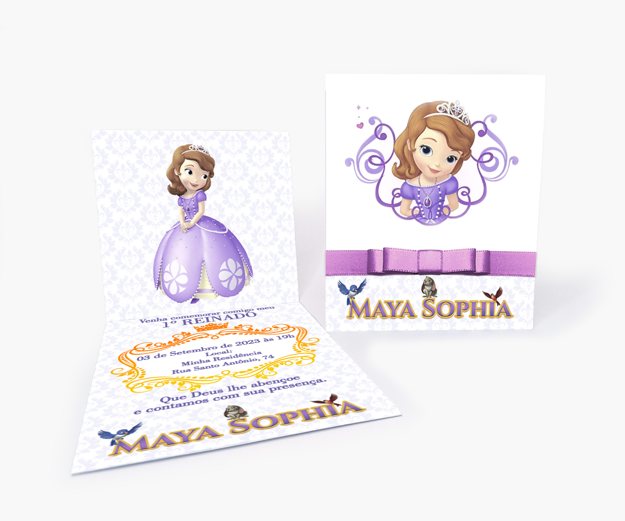 Convite Infantil Personalizado Tema Princesinha Sofia Lilás
